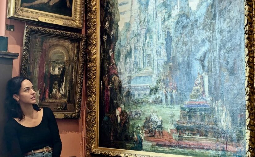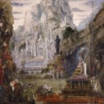 Gustave Moreau (1826 Paris – 1898 Paris), est un artiste peintre, graveur, dessinateur et sculpteur français. Il est considéré comme l’un des précurseur du courant symboliste. Son père, architecte, lui inculque une solide culture classique alors que sa mère entoure de ses soins le jeune garçon de santé fragile. Dès l’âge de 8 ans, il ne cesse de dessiner. Il intègre l’Ecole des Beaux-Arts de Paris à l’âge de 20ans ; échouant deux fois au prix de Rome, il quitte les Beaux-Arts et devient copiste pour le Louvre. Il admire Eugène Delacroix et se lie d’amitié avec Théodore Chassériau. Il commence sa carrière en 1852, en exposant ses œuvres régulièrement au Salon. Il est considéré comme le gardien des mythes et des légendes auxquels il se consacra inlassablement. Sa peinture est emprunte de mysticisme, il est un « assembleur de rêves » puisés dans les œuvres des maîtres anciens. Il accède à la notoriété au Salon de 1852, avec son tableau Œdipe et le sphinx, qui fut salué par l’ensemble de la critique.